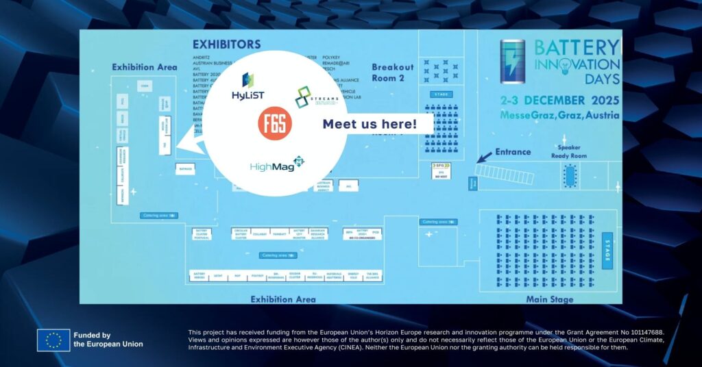 Alongside our fellow projects STREAMS Project and HighMag-Project, we will be available at the F6S Innovation booth to explain about our work and invite you to dive deeper into our efforts to innovate the European Battery Industry!